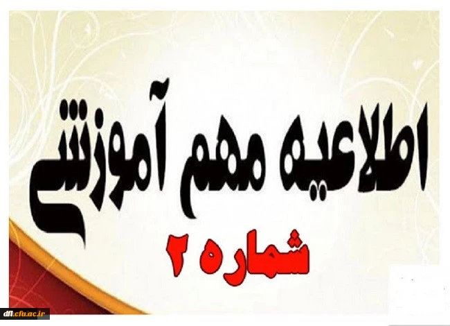 به اطلاع می رساند ضروری است دانشجومعلمان گرامی بخشنامه شماره 2 معاونت آموزشی و تحصیلات تکمیلی دانشگاه فرهنگیان جهت تداوم برنامه های آموزشی در قالب آموزش های الکترونیکی در این دوران را از پیوست دریافت نموده و با دقت مطالعه نمایند. 2