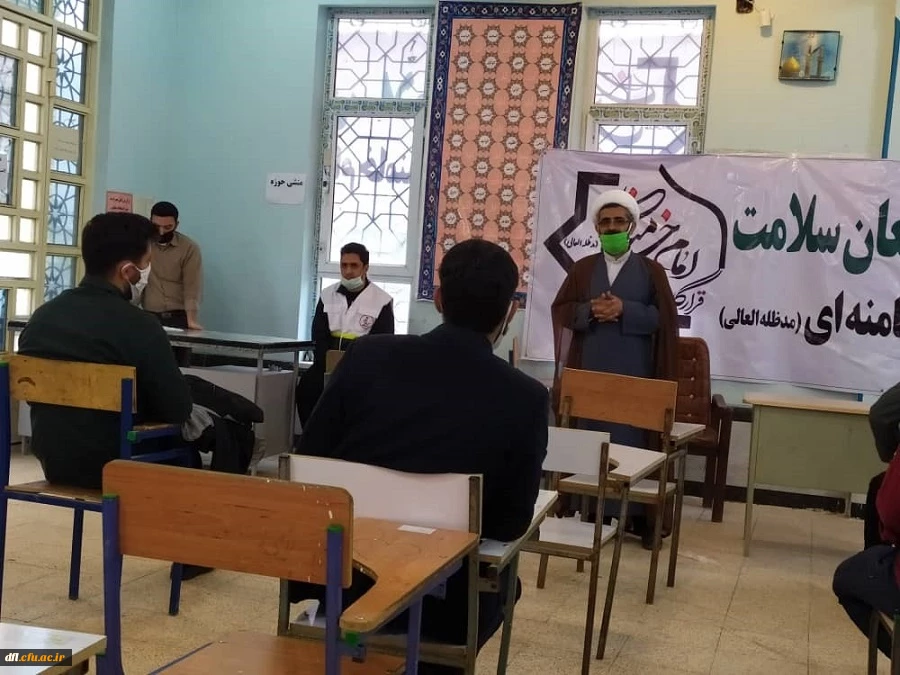 کلاس آموزشی-بهداشتی قرارگاه امام خامنه ای برای مقابله با ویروس کرونا در مدرسه امام خامنه ای برای دانشجویان پردیس علامه طباطبایی لرستان