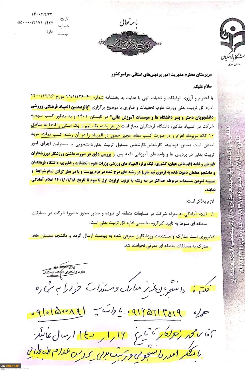امتیاز دهید : پانزدهمین المپیاد فرهنگی ورزشی دانشجویان دختر وپسر دانشگاه ها وموسسات آموزش عالی 3 چهارشنبه 25 اسفند 1400 ساعت 9:41